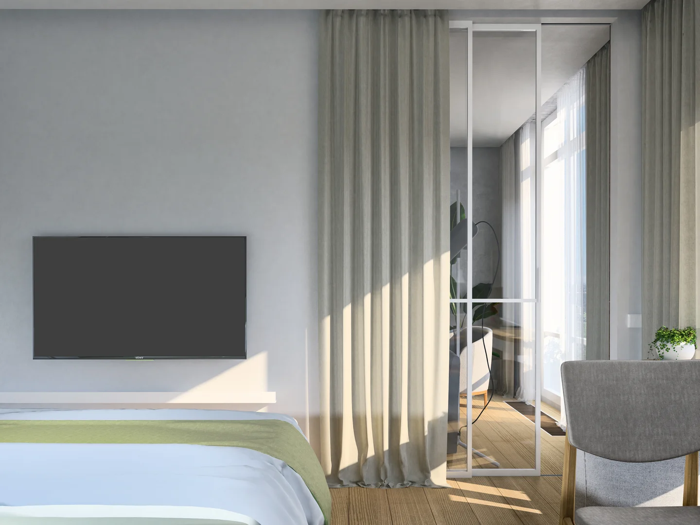 This project presents a compact apartment designed in soft, light colors, with a thoughtfully planned layout that ensures comfort, efficiency, and a sense of openness.
