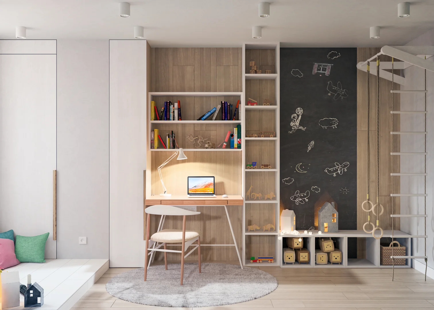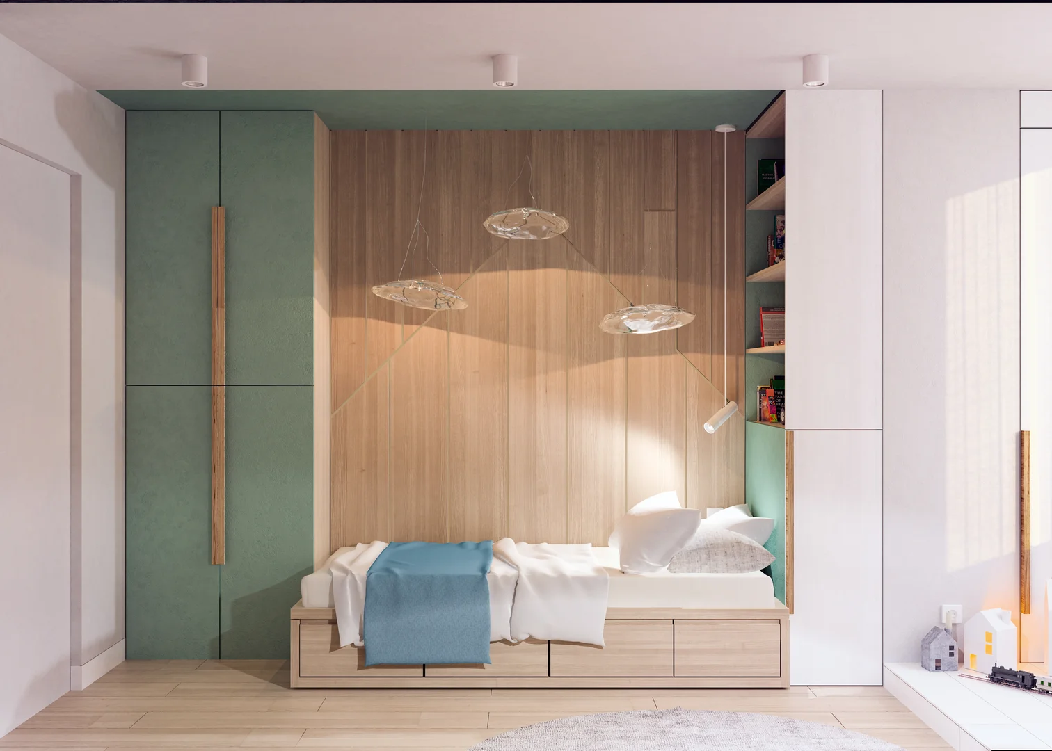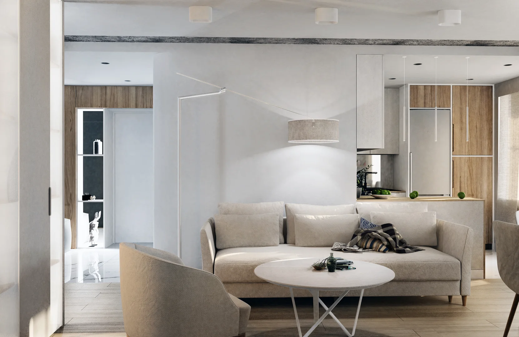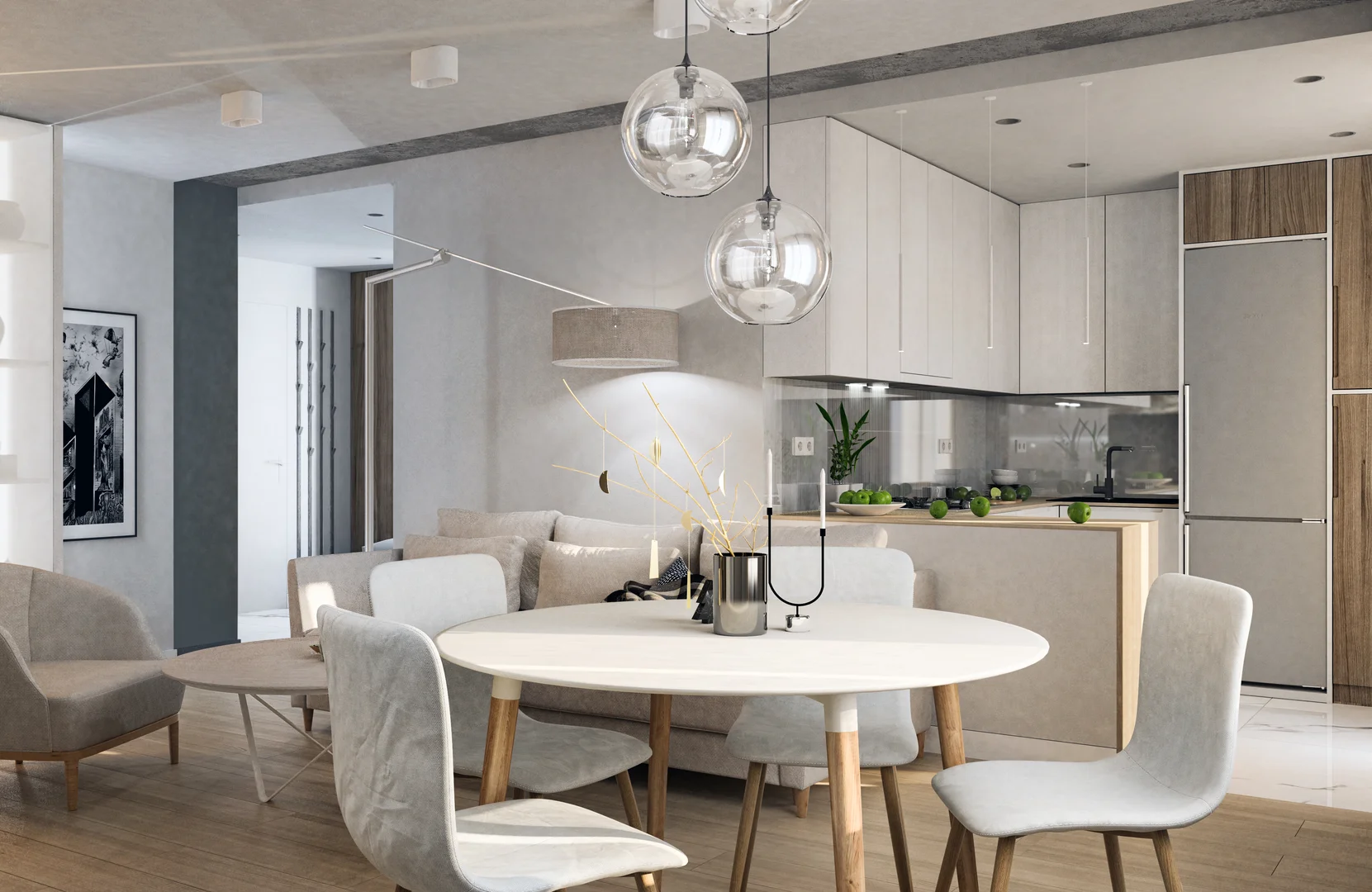 Renovation of an existing apartment with a complete redesign, creating a fresh and contemporary interior in light tones for a young family.