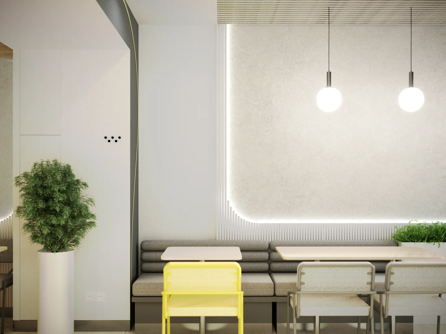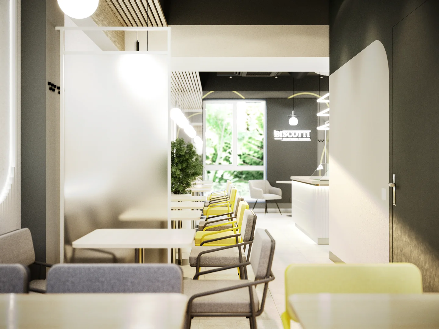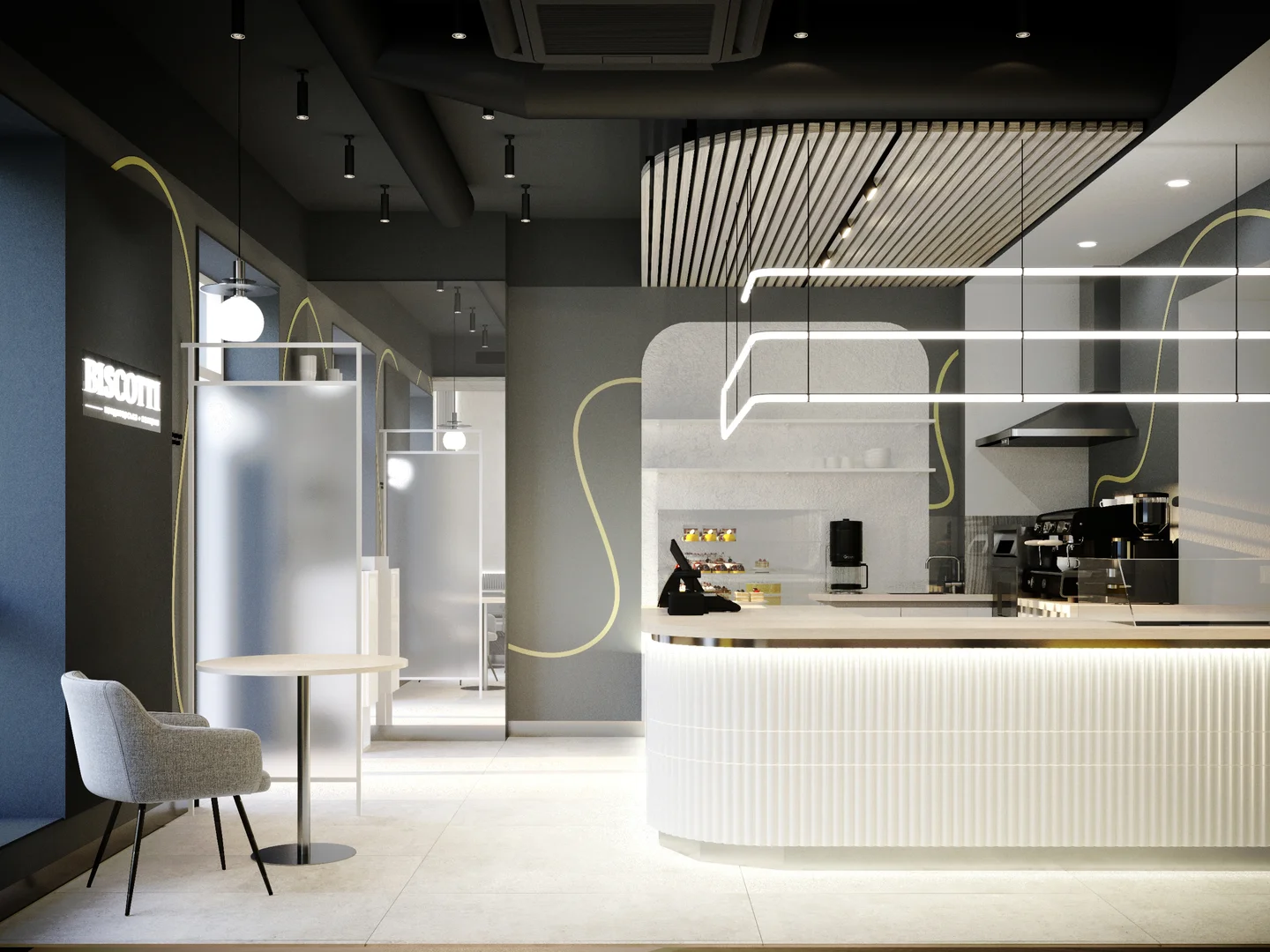 Designing a café-shop for a confectionery with a strict and clearly defined corporate identity presented a unique challenge. Despite these constraints, we introduced subtle and refined stylistic elements, creating a light, elegant, and inviting space that complements the brand while enhancing the overall customer experience.
