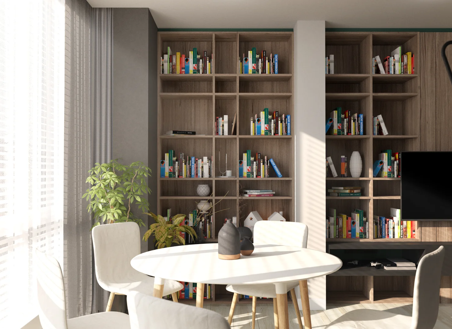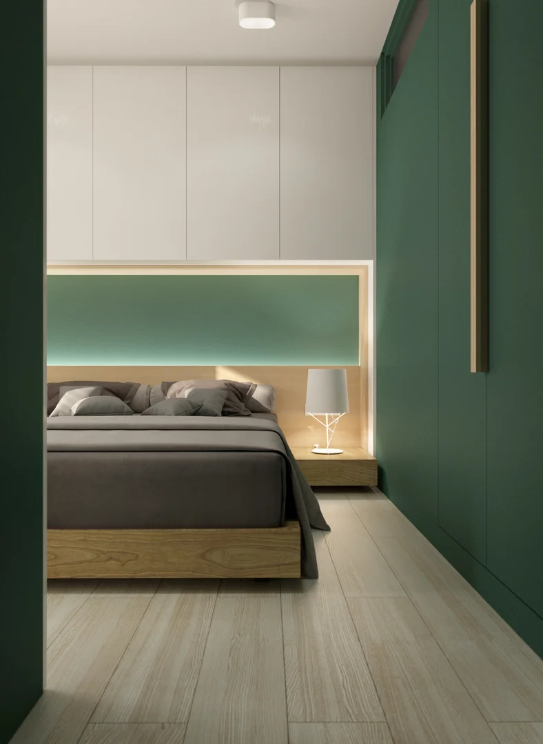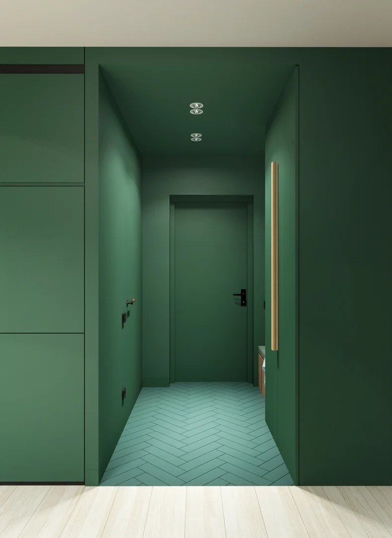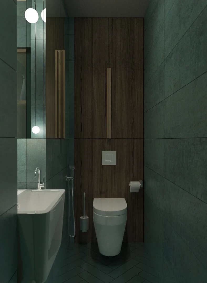 Необхідність перенесення кухні та додавання додаткової спальні призвела до створення високофункціонального планування. У цьому дизайні кухня стає невід'ємним елементом, що формує простір навколо акцентного ядра вхідної зони. Функціональність та естетика визначають суть цього проєкту.