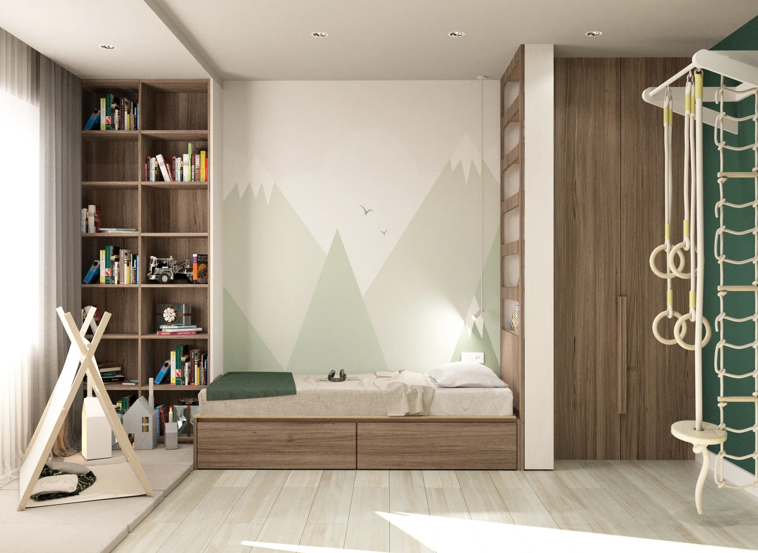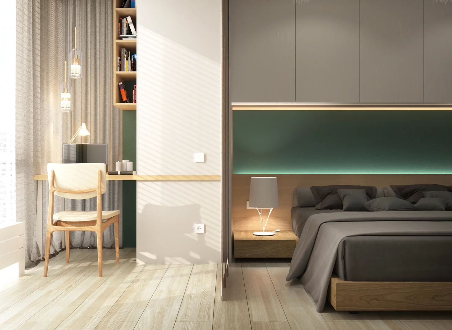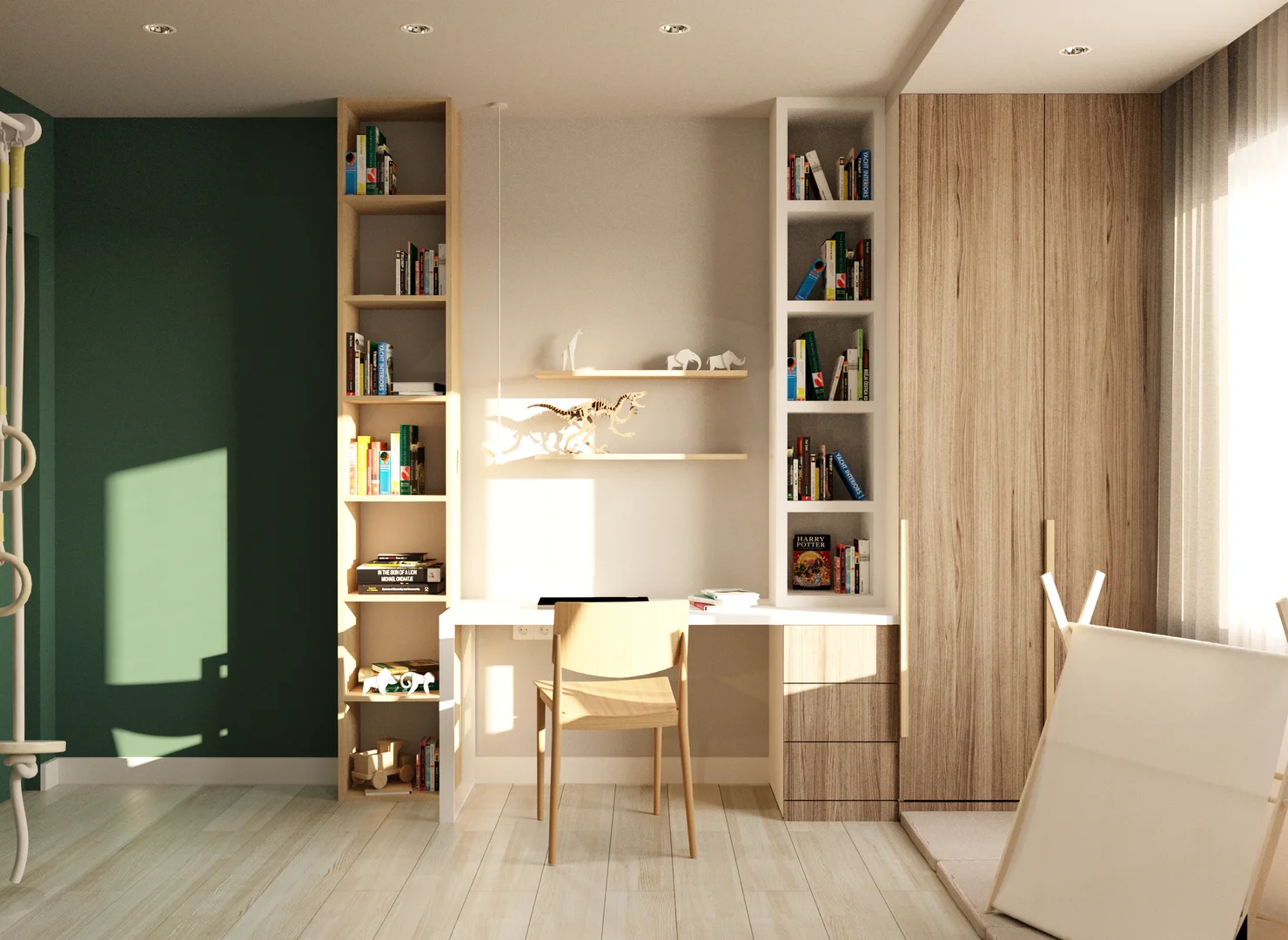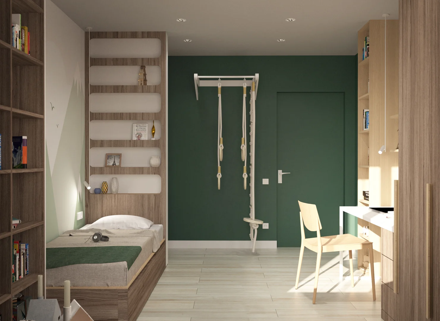 Необхідність перенесення кухні та додавання додаткової спальні призвела до створення високофункціонального планування. У цьому дизайні кухня стає невід'ємним елементом, що формує простір навколо акцентного ядра вхідної зони. Функціональність та естетика визначають суть цього проєкту.